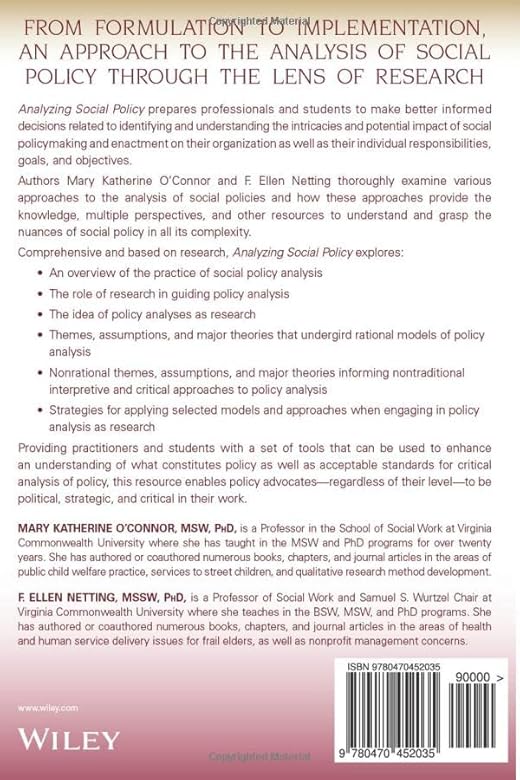 Analyzing Social Policy Multiple Perspectives For Critically Understanding And Evaluating Policy O Connor Mary Katherine Netting F Ellen 9780470452035 Amazon Com Books
